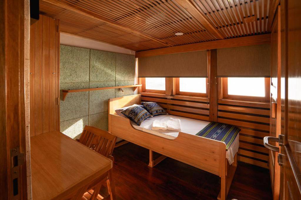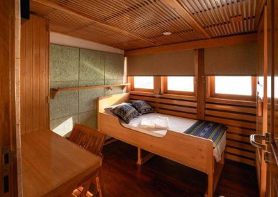 The 4 years of boat construction was done by local craftsmen and overseen by our team. Sehat Elona was designed for modern travels in mind – giving safety and exclusive comfort for her guests. The ship has 6 double cabins and 3 double cabins with extra beds for a total of 22 passengers. Each with en suite bathrooms and some with fantastic views and some with Air-conditioning.